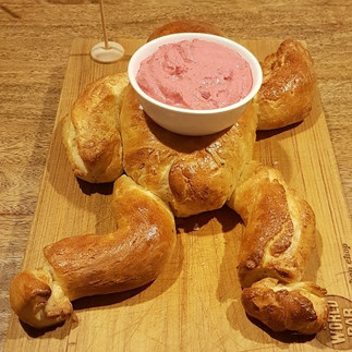 (Herby bread with beetroot and feta dip)